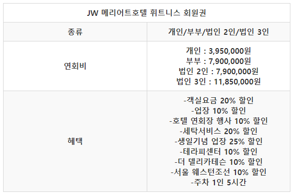 메리어트호텔의 회원권은 개인회원권, 부부회원권,