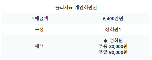 플라자cc의 회원권은 개인회원권으로 정회원 1인 입회로