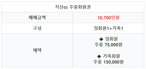 오늘 소개해드릴 지산cc의 회원권은 주중회원권으로