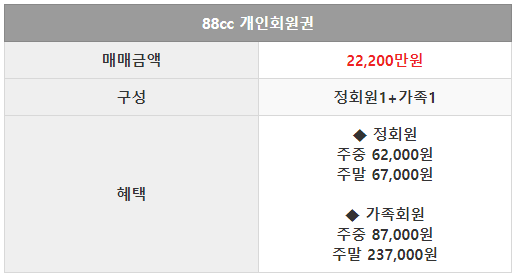 88cc 회원권은 개인회원권으로 정회원 1인과