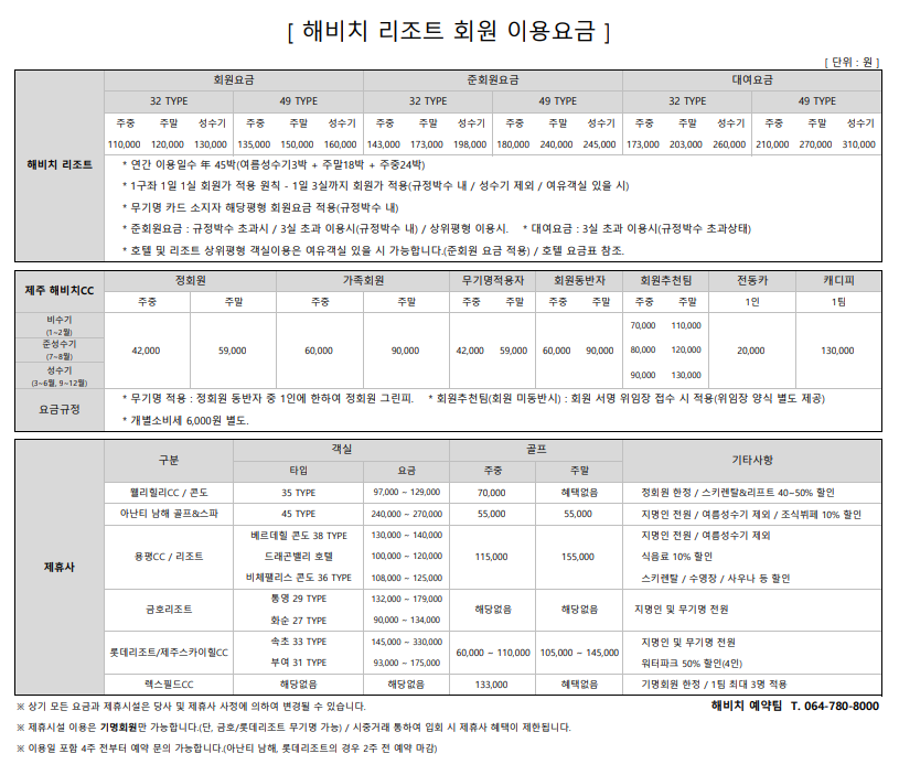 해비치리조트의 회원권은 개인과 법인으로 구분되어 있습니다.