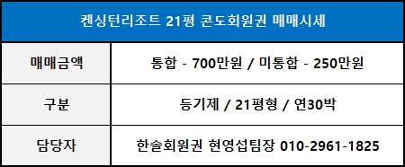 켄싱턴리조트회원권 21평/26평/31평 신규매물 매매시세 (2021.04.30.) 안내