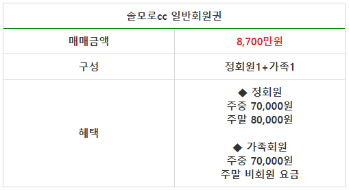 솔모로cc 회원권은 일반회원권으로 정회원 1인과