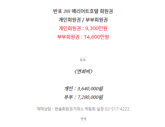 보낼 수 있는 메리어트호텔 휘트니스 회원권에 대해서