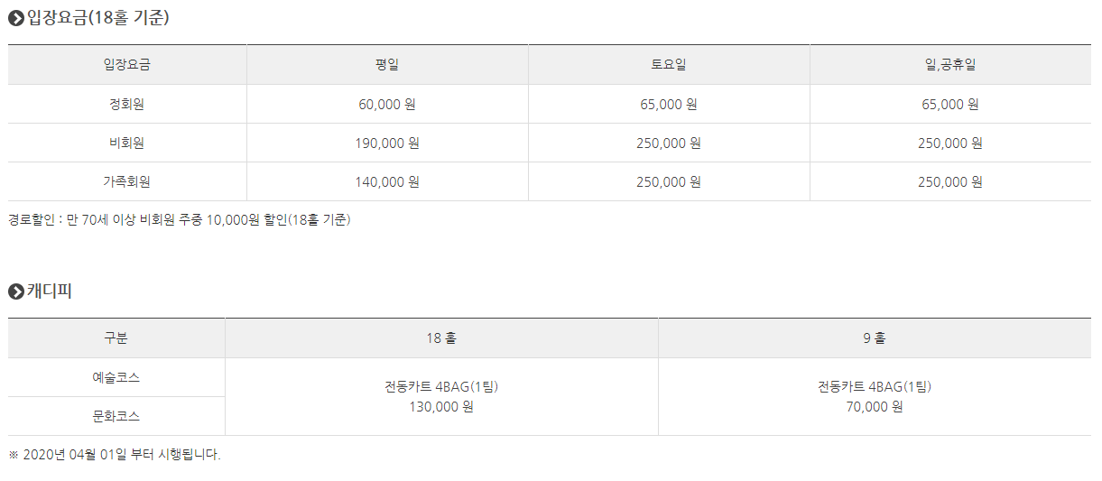 ● 뉴서울cc 이용요금 및 예약 안내 ●