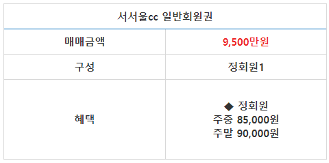 ● 서서울cc 회원권 안내