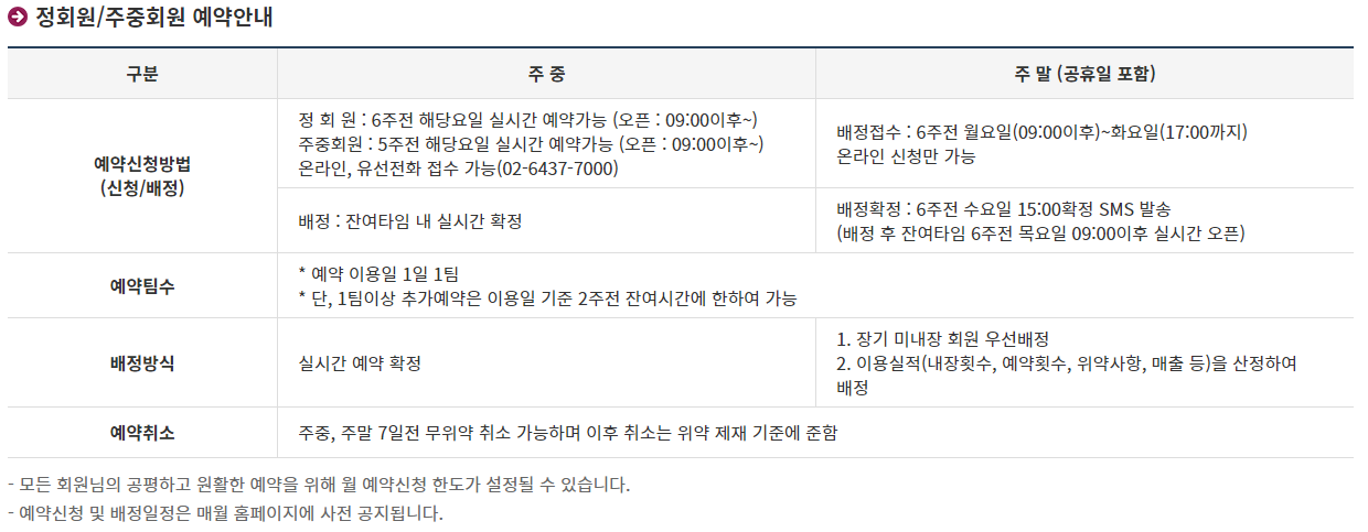 구성되어 있습니다. 연 주말 12회, 주중 18회 부킹이