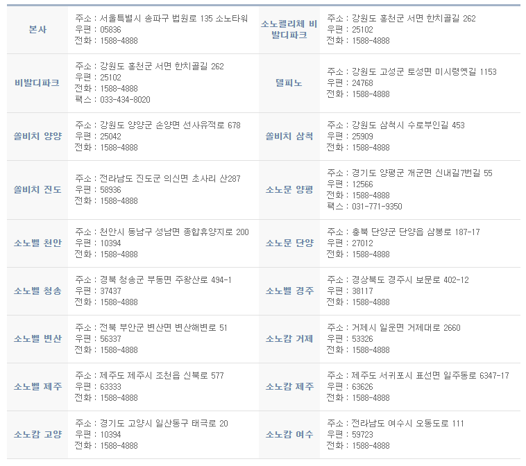 ◆ 대명리조트 전국 체인 현황 ◆