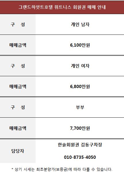 그랜드하얏트호텔 휘트니스 회원권 매매 정보