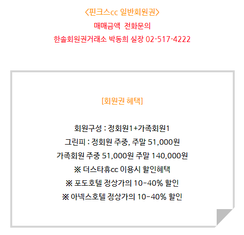 핀크스cc 골프회원권 혜택과 정보