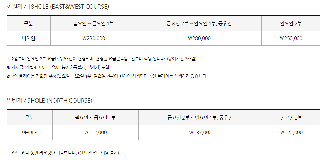 ■ 핀크스cc 이용요금 및 예약 안내 ■