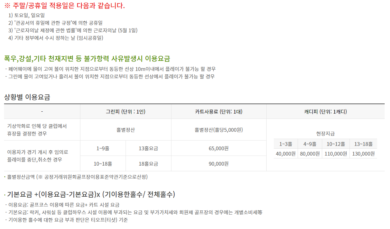 ◆ 레이크사이드cc 이용요금 및 예약 안내