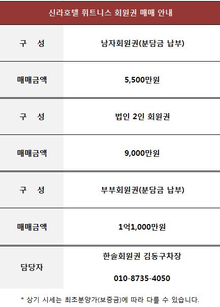 신라호텔 휘트니스 회원권 매매 정보