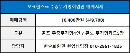 ◀ 오크힐스cc 주중무기명 매매가격 ▶