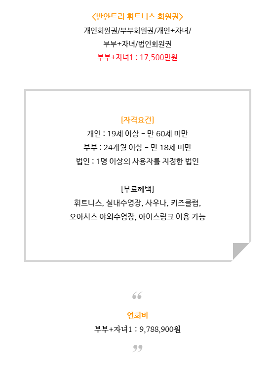 오늘 소개해드릴 반얀트리의 회원권 종류는 부부+자녀1로