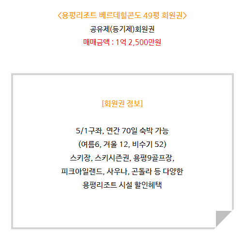 용평리조트 베르데힐 콘도 회원권은 49평, 공유제 회원권으로