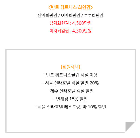 반트 휘트니스 회원권은 남자회원권, 여자회원권, 부부회원권, 법인회원권