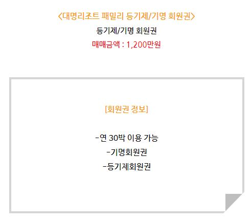 오늘 알아볼 대명리조트 회원권은 패밀리 등기제 기명회원권으로
