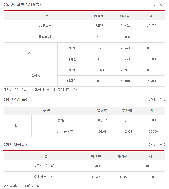 ◆ 발리오스cc 이용요금 및 예약 안내 ◆