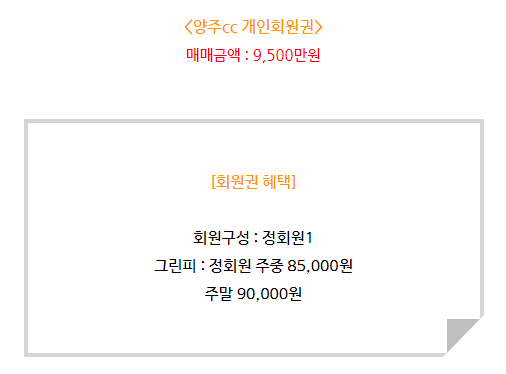 양주cc 회원권은 개인회원권으로 정회원 1인으로