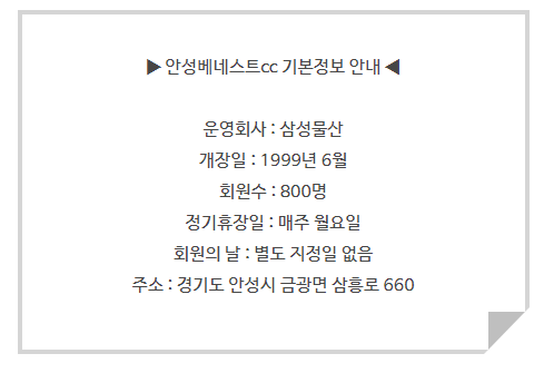 ● 안성베네스트cc 이용요금 및 예약 안내 ●