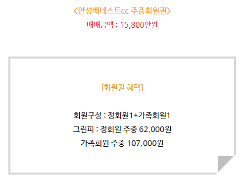안성베네스트cc 골프회원권 혜택안내