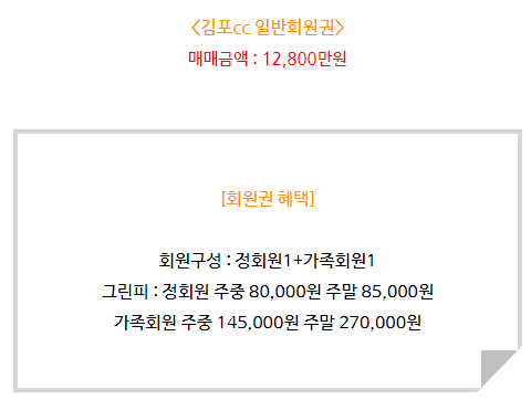 김포cc 회원권은 일반회원권으로 정회원 1인과