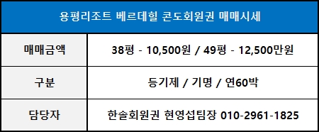 ■ 용평베르데힐 콘도회원권 추천매물 안내 ■