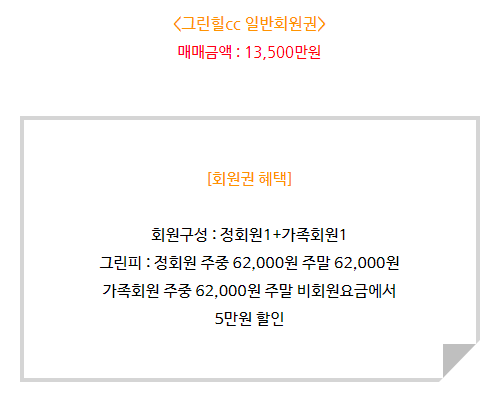 그린힐cc 회원권은 일반회원권으로 정회원 1인과