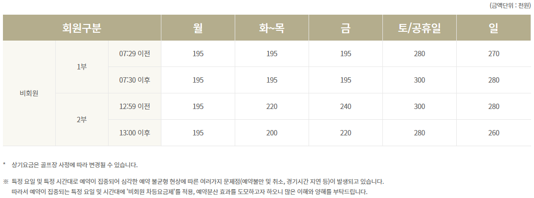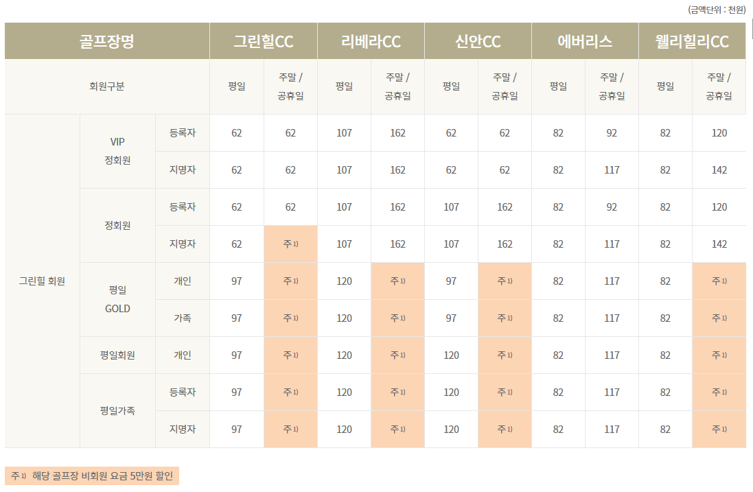 ● 그린힐cc 이용요금 및 예약 안내 ●