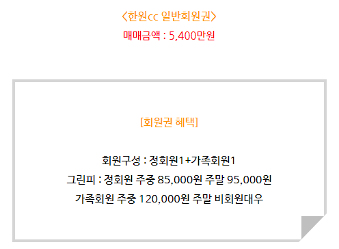 한원cc 회원권은 일반회원권으로 정회원 1인과