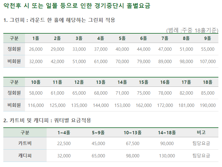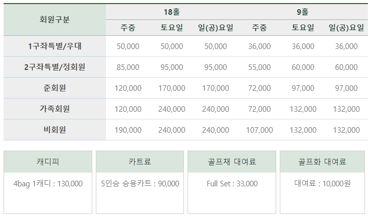 ◆ 한원cc 이용요금 및 예약 안내 ◆