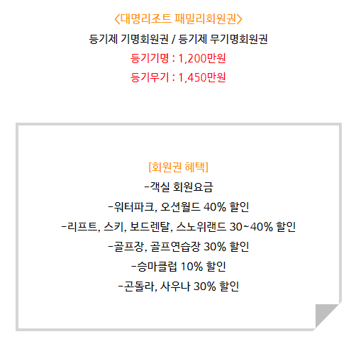 대명리조트의 패밀리회원권은 등기제 기명회원권과