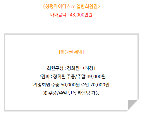 청평마이다스cc 회원권은 일반회원권으로 정회원 1인과