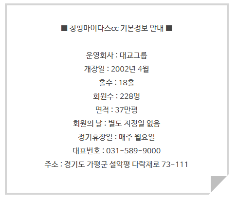 ● 청평마이다스cc 기본정보 안내 ●
