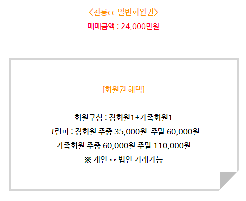 천룡cc 회원권을 일반회원권으로 정회원 1인과