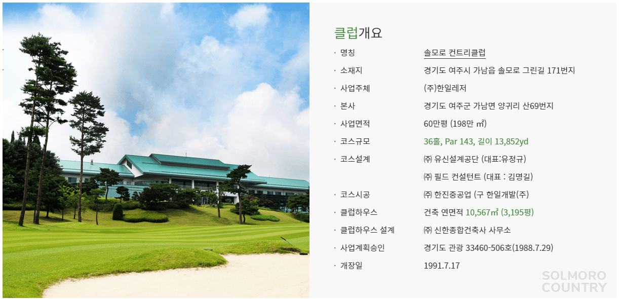솔모로cc 기본정보 안내
