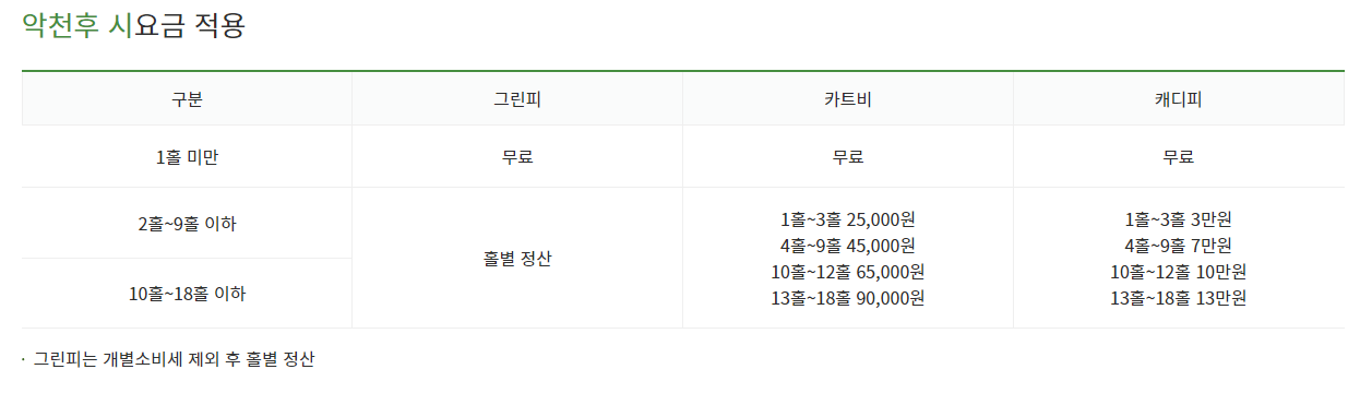 솔모로cc 이용요금 및 예약 안내