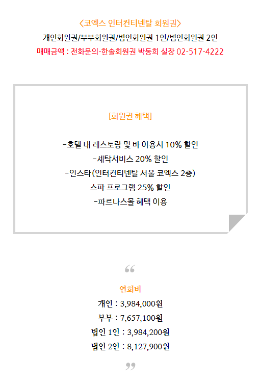 오늘은 코엑스 인터컨티넨탈 회원권에 대해서