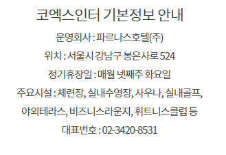 코엑스 인터컨티넨탈호텔 휘트니스 회원권 혜택안내