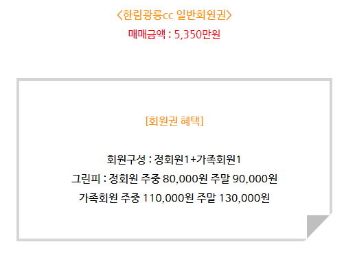 한림광릉cc 회원권은 일반회원권으로 정회원 1인과