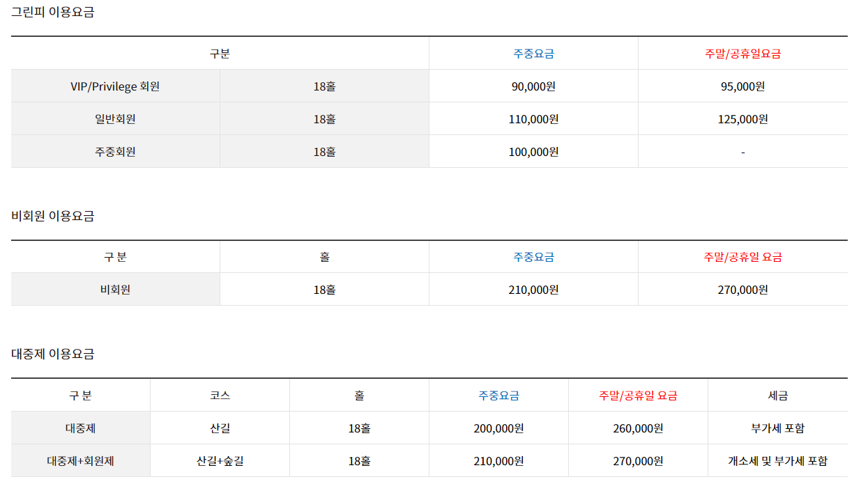 ● 레이크우드cc 이용요금 및 예약 안내 ●