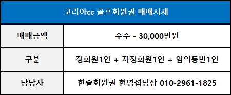 ■ 코리아cc 골프회원권 추천매물 안내 ■