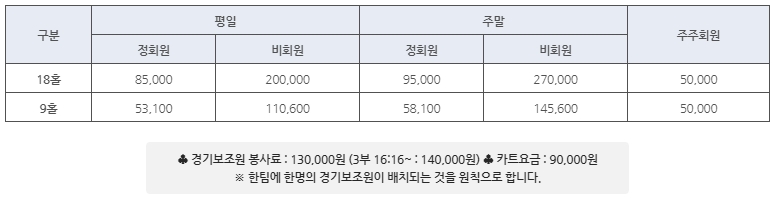 ▣ 코리아cc 골프 그린피 및 이용요금 안내 ▣