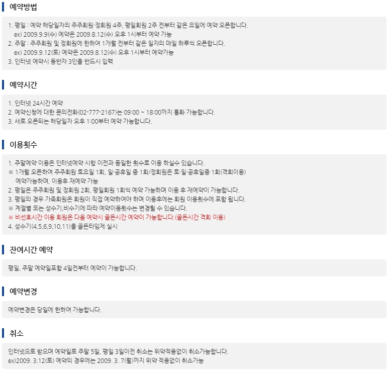 - 가족회원 : 정회원의 배우자 또는 직계자녀(만18~30세)