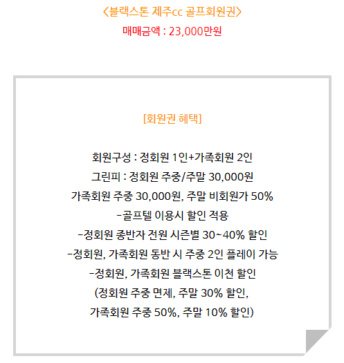 블랙스톤cc 회원권은 정회원권으로 정회원 1인과