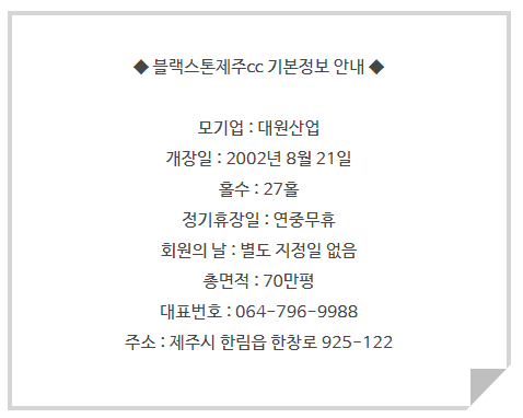 오늘은 아름다운 제주도에 위치한 블랙스톤cc에 대해