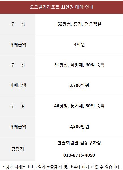 오크밸리리조트 회원권 매매 정보