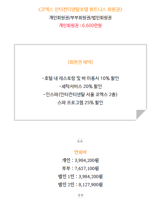 코엑스 인터컨티넨탈호텔 휘트니스 회원권 혜택안내