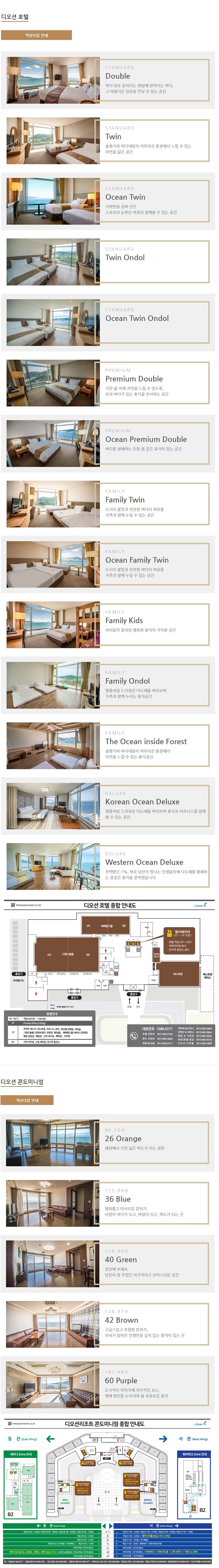 객실안내 : 디오션호텔(14개 타입 136실), 디오션콘도(5개 타입 128실)